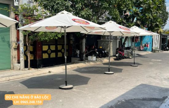 Đặc biệt tại Bảo Lộc, khi ánh nắng có thể kéo dài vào buổi trưa nên rất cần dù che nắng. Việc bố trí dù che giúp không gian luôn mát mẻ, dễ chịu cho người sử dụng.